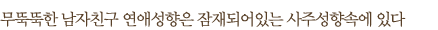»ç¶÷ÀÇ ¿¬¾Ö¼ºÇâÀº »çÁÖÆÈÀÚ¿Í °ÑÀ¸·Î µå·¯³ª´Â ¿òÁ÷ÀÓÀ̸¹ÀÌ ´Ù¸£±â ¶§¹®¿¡ ¿î¼¼ÀÇ ¼ºÇâÀ» ¹Ýµå½Ã ¤¾îºÁ¾ßÇÑ´Ù.